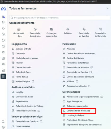3. Após efetuar o login, verifique se o portfólio empresarial correto está selecionado. Em seguida, acesse a opção Todas as ferramentas no menu lateral;