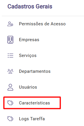 Acesse a solução Gestão de Serviços. No menu lateral esquerdo, clique em Características.