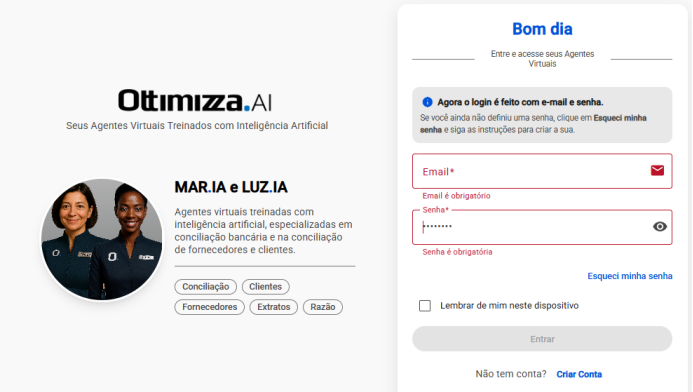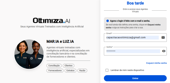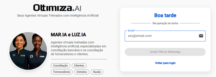 1. Para acessar as agentes de conciliação, abra o navegador e acesse o link https://agentes.ottimizza.ai