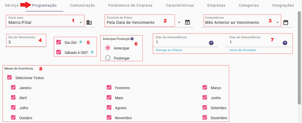 7- Defina os dias de antecedência;