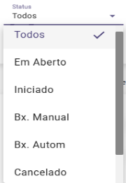 No filtro Status, ao acessá-lo, são exibidas todas as opções disponíveis para seleção neste campo, conforme destacado na imagem a seguir.